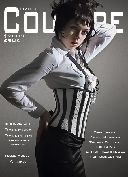 In this shoot with the well known Model Apnea, we did a faux fashion article shoot, in which I made an faux magazine cover from the image. The lighting was two Fresnel lights both from camera right, one on the background and one on the model herself. The background was a plain white wall in a hotel room. We didn’t have much space for backgrounds and had to make due with what we had, hence the texture on the background.